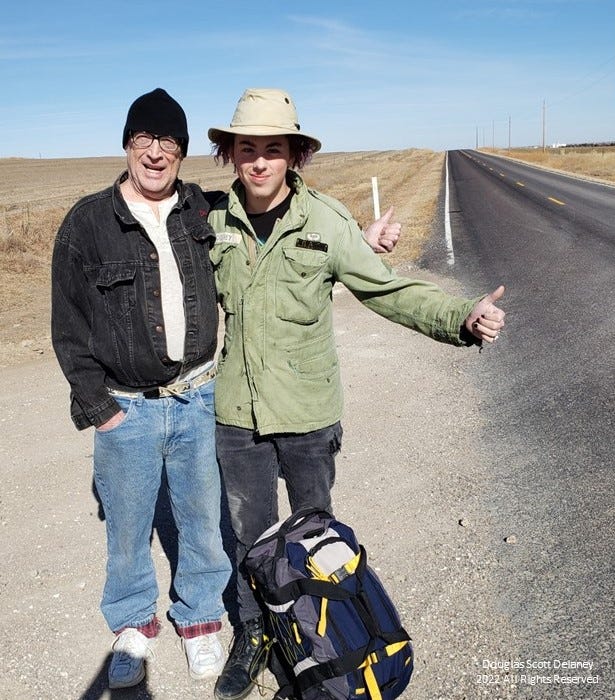 I was delighted when my son agreed to be on the cover of STRANDED because his question a little over three years ago, “Dad, did you ever hitchhike?” is the reason I started writing about this experience at all. I thought I’d write one little diddy for Facebook (which my son would never read because he thinks FB is just for us “geezers”) and be done with it.